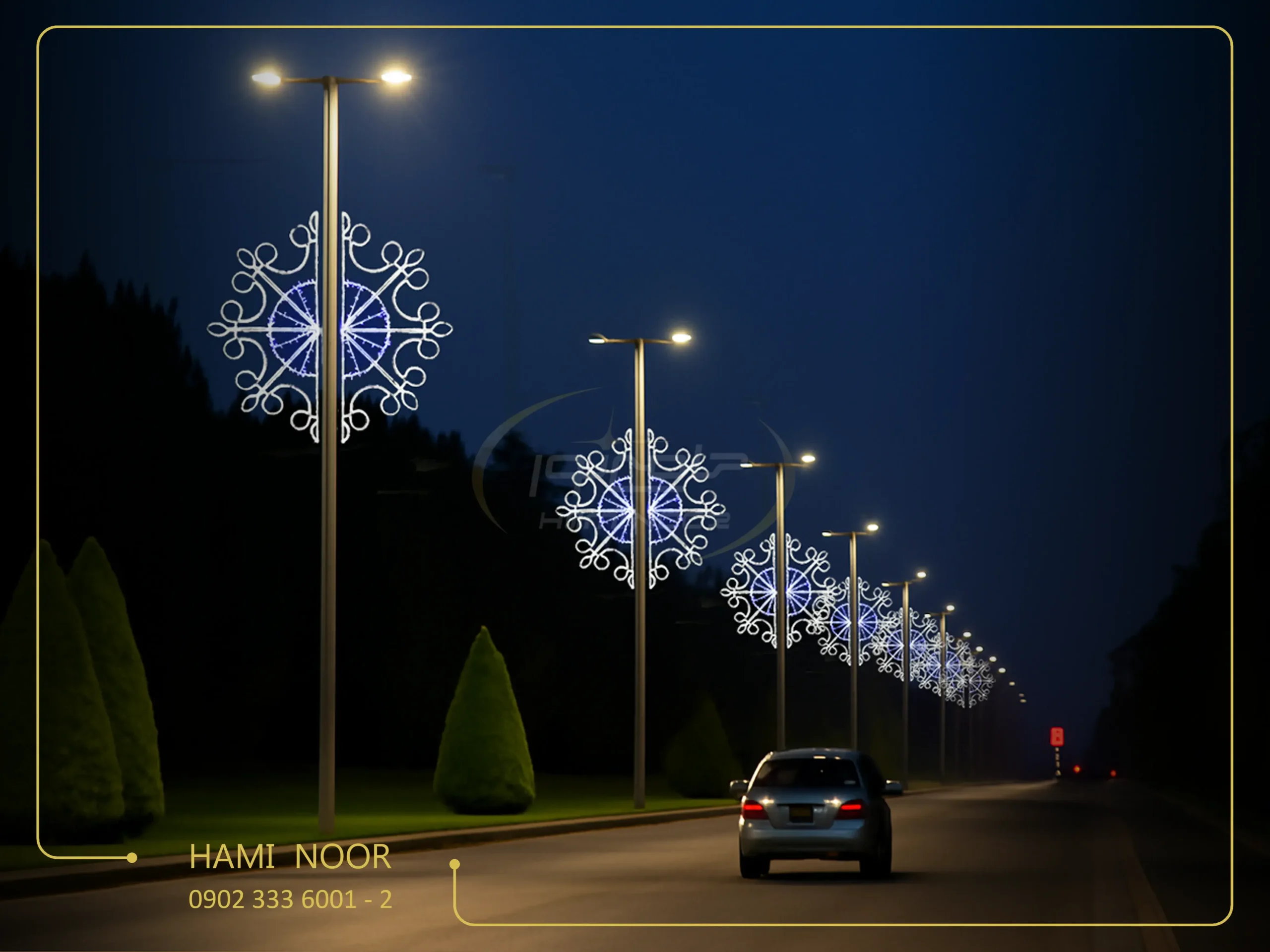 المان نوری مدل اطلسی به منظور نور آرایی و آذین بندی شهری تولید وبه روش نصب بلواری برروی تیرچراغ برق درارتفاع مشخص نصب و اجرا می گردد. این المان نوری از ترکیب پروفیل و لوله سبک صنعتی آلیاژی و آرماتور ساخته می شود.به گونه ای که اجزای مختلف المان نوری اطلسی پس از طراحی در ابعاد و اندازه های متناسب با طرح برش خورده و سپس به صورت مکانیزه خم کاری و پس از آن عملیات جوشکاری روی آن انجام می گیرد. در ادامه سازه بدست آمده در واحد رنگ آمیزی به صورت سه لایه رنگ آمیزی شده و در نهایت جهت مونتاژ منبع نور بر روی سازه به واحد مونتاژ منتقل می شود.المان نوری اطلسی در ابعاد 2 متر در 2 متر قابل تولید می باشد.این المان نوری قابلیت تولید به صورت تک رنگ و ترکیب چند رنگ مختلف را نیز دارد. از دیگر خصوصیات این المان نوری می توان به وزن سبک ،سهولت در نصب و حمل آسان آن اشاره کرد.طراحی زیبا و دید دو طرفه از ویژگی های بارز این المان نوری می باشد. جهت نصب این المان نوری به پایه چراغ برق بست فلزی مخصوص تعبیه شده است،به طوریکه نصب این المان نوری بدون نیاز به هرگونه سوراخکاری و جوشکاری را ممکن میسازد.المان نوری اطلسی با گارانتی یکساله به مشتریان عرضه میگردد